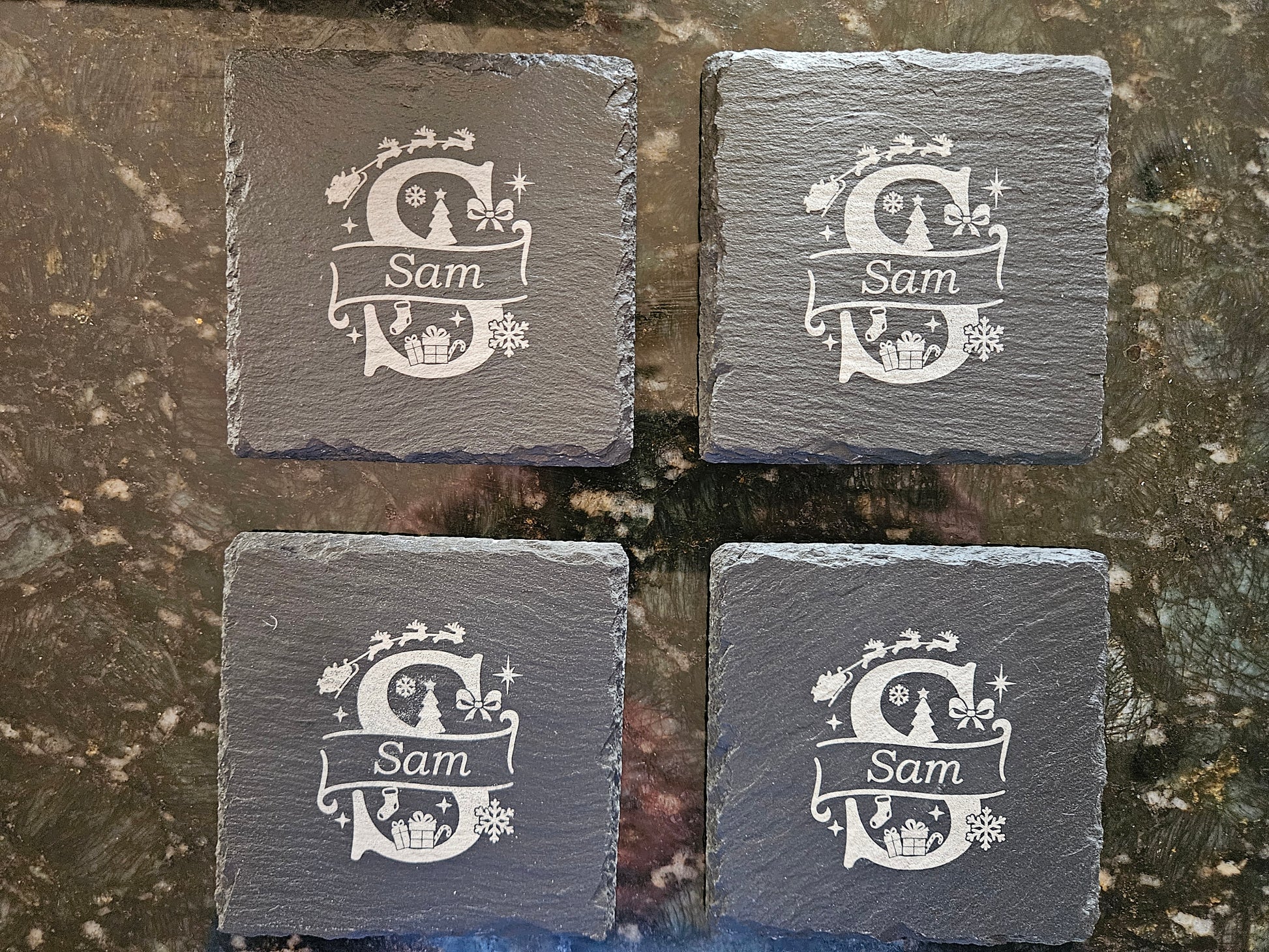 4x4" Personalized Slate Holiday Coasters (Set of 4)